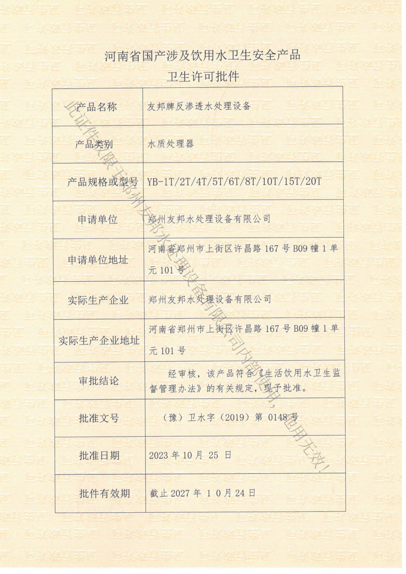 放心飲用健康水,鄭州友邦一 2019-10-10